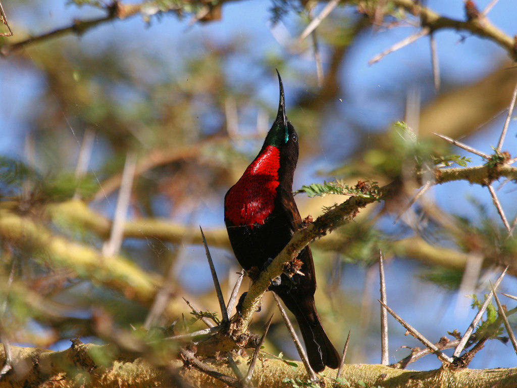 Beskrivelse: I forhold til Hunters Sunbird(Chalcomitra hunteri), der har sort strube, har denne grøn strube, men det kan være svært at se i felten, hvs ikke lyset falder rigtig. Hunteri adskiller sig også ved en lilla plet ved skulderen. Den er lettere at se i felten.