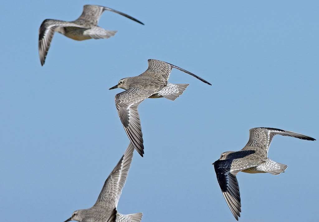 Det gulbrune anstrøg på undersiden, som mangler hos adulte i vinterdragt, ses tillige på to af fuglene hér, og anes på den tredje, men kan selvfølgelig ikke ses på den fjerne 'overskårne'.......