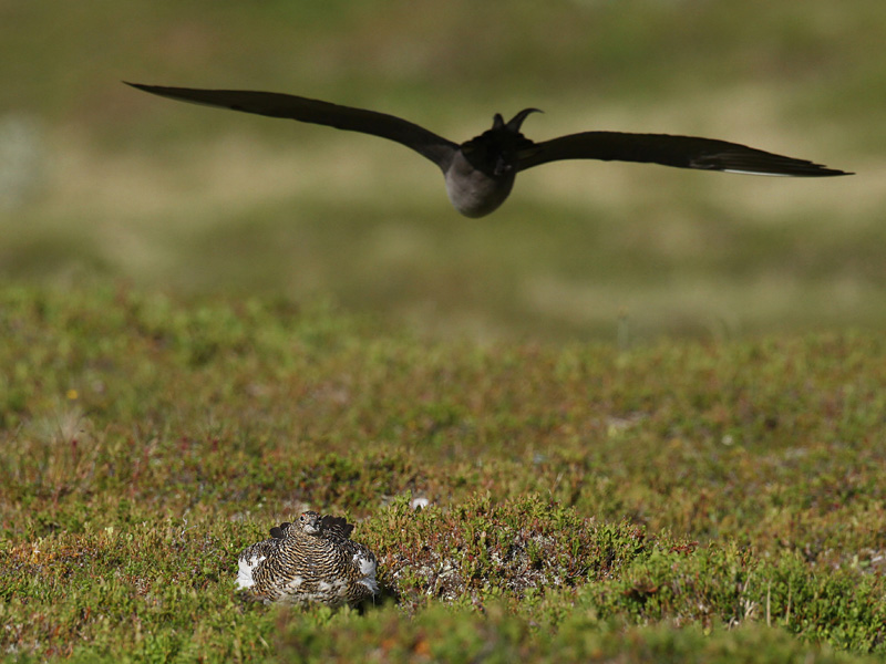 Beskrivelse: A female willow grouse preparing itself mentally for an aerial attack by a long-tailed skua. More pictures from an absolutely magic July trip to northern Sweden on http://www.pbase.com/cochoa