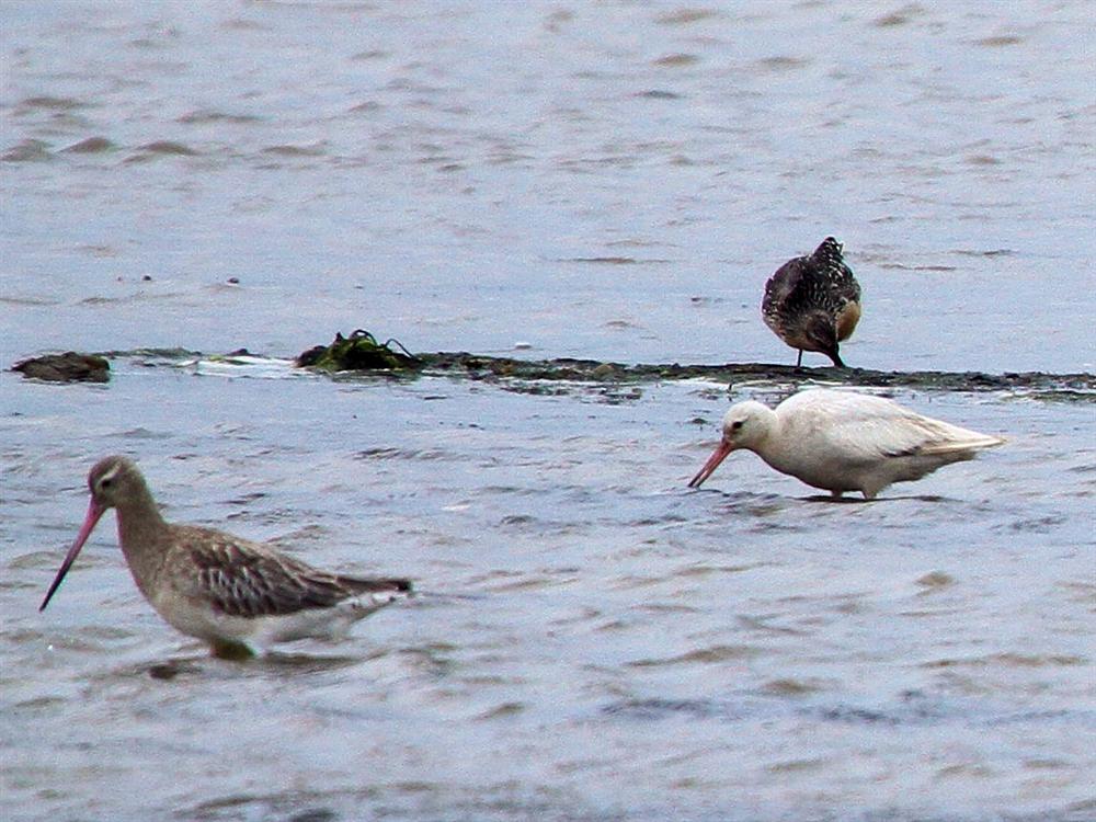 Beskrivelse: Denne hvide fugl fouragerede sammen med en flok islandske ryler og kobbersnepper. Er det en muteret kobbersneppe eller... Desværre var vejret dårligt, så billedkvaliteten er ikke den bedste.