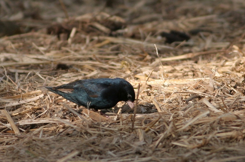 Beskrivelse: Hvis det er muligt med sikkerhed at bestemme denne adulte han til Jambandu Indigobird, vil det dreje sig om 2. fund i Etiopien. 1. fund var et eks indsamlet (som Village Indigobird) 38 km nord for Jimma i 1971 og bestemt til Jambandu Indigobird af R.B. Payne på naturhistorisk museum i Paris i 2006. Der er i direkte linje ca 75 km fra lok for 1. fundet til hvor jeg så denne fugl (nogle km opstroems fra broen over Gibe floden). Fuglen blev set meget fint i en times tid bl.a. i selskab med flere hanner af Village Indigobird, så direkte sammenligning var mulig gennem længere tid. Den skilte sig straks ud ved sin markante groenlige glans, modsat Village Indigobirds lilla. Brunt vingepanel og tydelig mattere mere pinkish benfarve var også anderledes end hannerne af Village Indigobird. Desværre skulle en sikker bestemmelse af hanner af Indigobirds (hunner er umulige) kun være mulig vha sangen. Denne fugl var tavs, men jeg har siden kigget grundigt på mange hundrede hanner af Village Indigobird og ingen har lignet denne fugl. Senere eftersoegninger af Jambandu Indigobird i området har foreloebig været uden held. Nærmeste bestande af jambandu indigobird skulle findes så langt fra Etiopien som i Nigeria og Cameroon! Kommentarer er meget velkomne især hvis nogen har erfaring med Indigobirds fra Vestafrika (bl.a. Barka Indigobird som evt også er en mulighed) eller hvis nogen er i besiddelse af artiklen "Identification of Indigobirds" fra 1996 af R.B. Payne i "Bull. of African Bird Club".