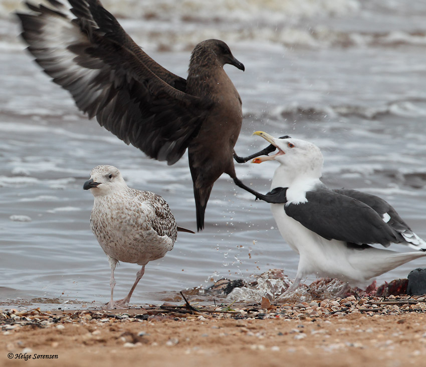 En ung Storkjove er i carambolage med en Større (og adult)