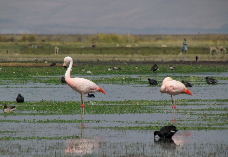 Beskrivelse: Rigtige, vilde Chile Flamingoer på hjemmebanen i Andesbjergene.