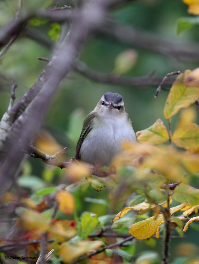 På Ole Kroghs foto er Vireoen en ny, smuk og eksotisk indvandrer som lige er ankommet til DK og som egentlig finder landet ganske rart og tilforladeligt.
