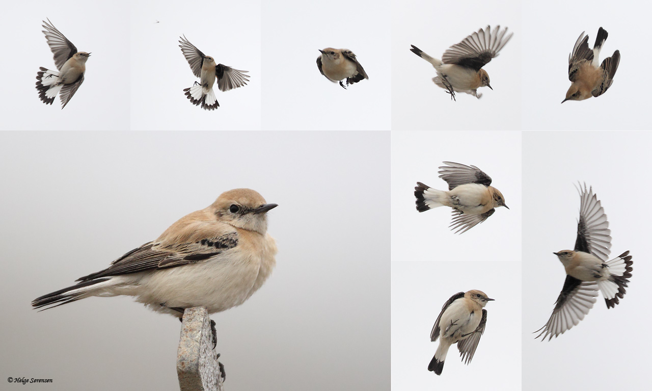 Beskrivelse: Glad for at jeg ikke skulle bestemme denne fugl i felten, med hjælp fra de gængse felthåndbøger, som ærlig talt ikke var meget bevendt. Fuglen fremstod meget lyst sandfarvet og meget lysere end de alm. (nok grønlandsk race) Stenpikkere jeg netop havde set i Hanstholm.