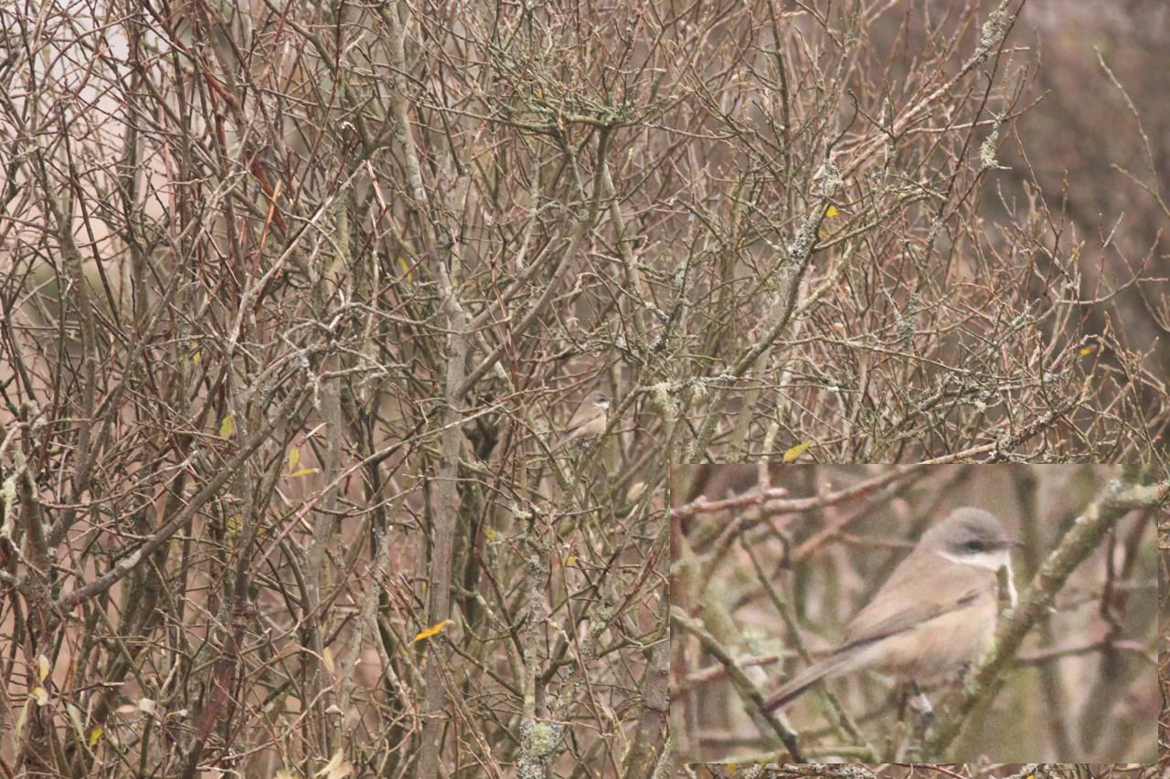 Beskrivelse: Dogmefoto af november-Gærdesangeren ved Grønningen, som supplement til den verserende diskussion af denne fugls racetilhørsforhold, som enten halimodendri eller minula ("Ørken-Gærdesanger").