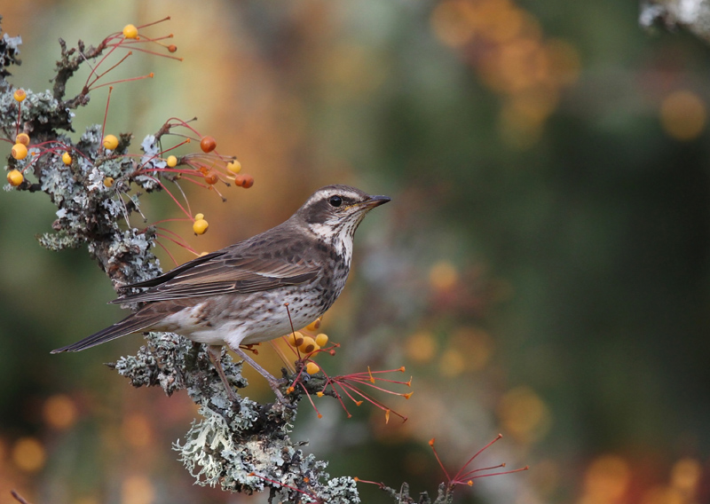 The difference between old, pale juvenile- and darker, fresh adult greater-coverts is striking on this 1.year (female?) Dusky Trush.