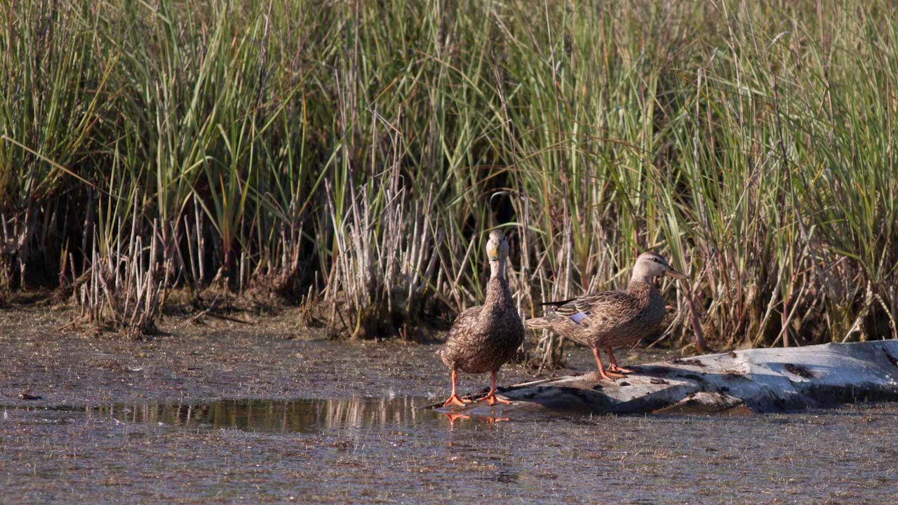 Beskrivelse: Mottled Duck "Floridagråand" er en smule mindre end Gråand, men kendes bedst på vingespejl næsten uden hvid bagkant, det mere ensfarvede næb, og at bug og bryst har samme farve og mønster.