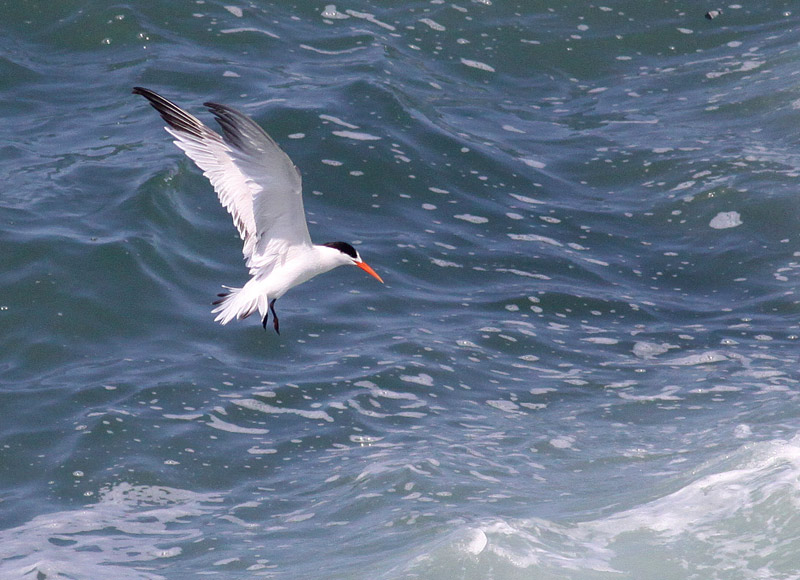 Beskrivelse: Bemærk Aztekerternens lange, i spidsen let buede næb, der her er ret ensartet rødt; hyppigt er spidsen lidt lysere orange eller gul end næbroden. Den sorte 2halvmaske2 dækker øjet, hvilket ses hos langt over 95%; jeg har fortsat ikke set Aztekerternes med udstående sort øje omgivet af hvidt,som man ser hos f.eks. Bengalsk Terne og kongeterne. Rester af mørkt i halen viser at fuglen er en 2K.