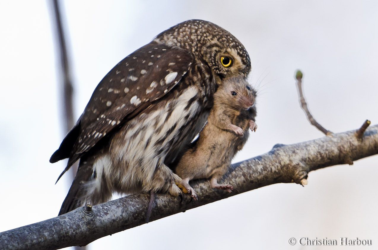 Det man ser på billedet er det øjeblik, hvor uglen tager livet af musen.