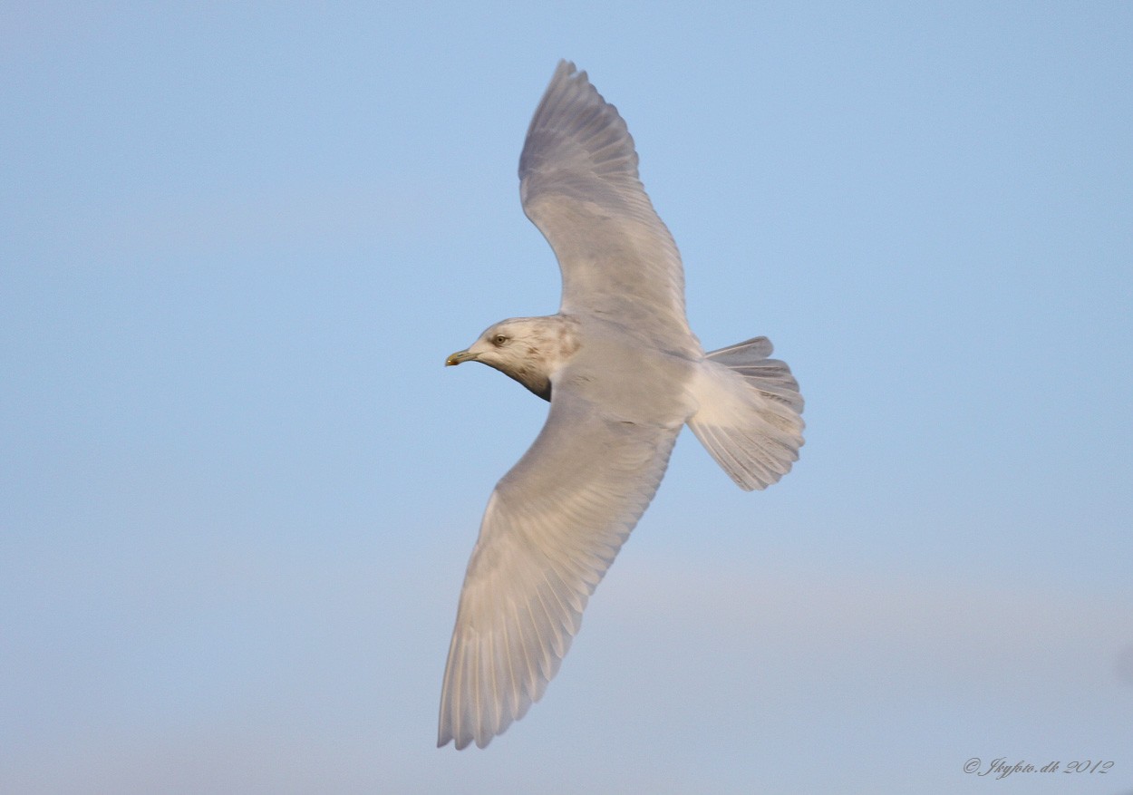 Beskrivelse: Er nok samme fugl som blev set syd for havnen i tirsdags 10/1-2012. Den lå i det vestlige bassin sammen med 4K Kumlien's Måge.