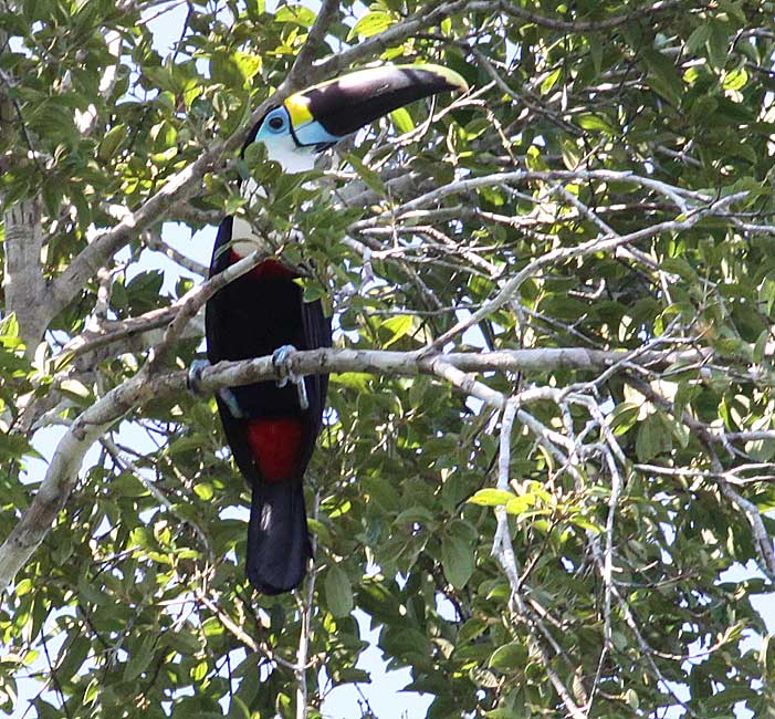 Det røde er genskin. Jeg har set denne race, og den opleves som havende sort næb i felten, hvilket også er bekræftet i The Birds of Ecuador. Til gengæld kan jeg så se i HBW, at racen tucanus har et overvejende rødbrunt næb, så der er måske alligevel lidt mening med galskaben. Hvidstrubet er måske heller ikke så meget bedre, da der findes en nærmest identisk Channel-billed toucan, som er ca. 10 cm mindre, så skulle det være Lille og Stor hvidstrubet.