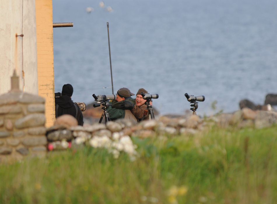 Titel: Happy birders at the first Song Sparrow for Sweden!