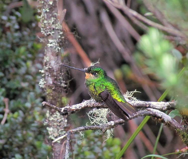 Beskrivelse: Arten som har lagt navn til reservatet, og som også var drivkraften bag opkøbet af området, efter at den blev genopdaget på Paramo Frontino i 2004. En enkelt fugl var blevet indsamlet i 1951, men siden blev arten ikke set i over 50 år, og blev regnet som en race eller farvevariant af Golden-bellied Starfrontlet. Arten er nem at få at se i overgangen mellem elfin-forest og paramo i godt 3000 moh., hvor der er opsat humming-feeders, selv om verdensbestanden vurderes til kun at være omkring 200-250 fugle. For at nå hertil skal man dog lige igennem en times buskørsel fra nærmeste større by (Urrao), 1½-2 timers vandring op til lodgen, og derefter yderligere 2 timer ad smattede og optrådte stier op til paramo'en. Jeg fik dog også set en enkelt fugl nede ved lodgen, i forbindelse med en halv dags styrtregn.