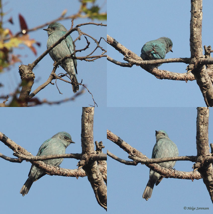 Ovenfor skriver jeg: "Din øverste fugl til højre viser noget af det man også bemærker på Arnes fluesnapper; nemlig en blå svingfjer, der bliver sorte i spidsen samt ikke mindst sort håndsving-projektion." Det blev en smule forvrøvlet. Jeg mente, at de blå armsvingfjer bliver sorte i spidsen.