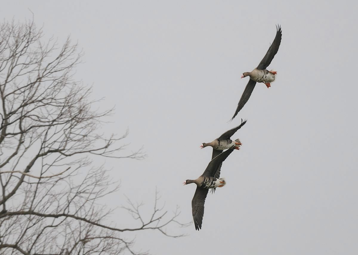 Beskrivelse: Blisgæs ssp albifrons fotograferet fra Søholtvejen i forårslys.