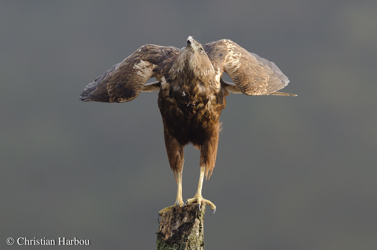 Beskrivelse: Der er gjort klar til landing, men herren vælger i denne omgang at flyve over.