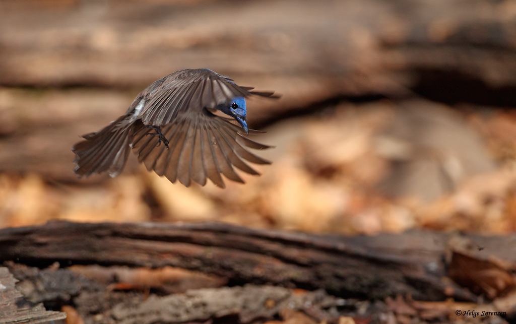 Beskrivelse: I modsætning til de fleste andre fugle bader monarken ikke ved at sidde i vandhullet. Istedet flyver den på isfugle-maner ned i vandet i et plask og hurtigt op igen på en gren hvor den så sidder og pudser sig.