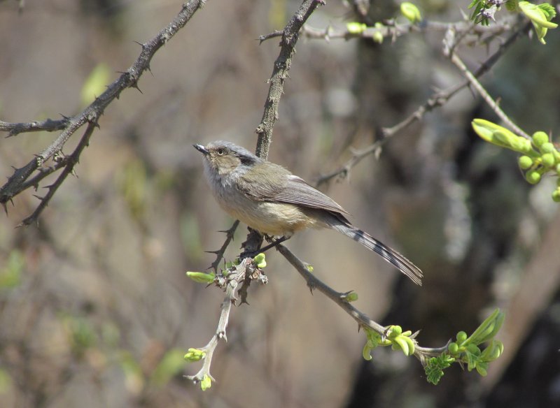 Beskrivelse: hun/female, ssp. melanotis. Bushtit er formodentlig nært beslægtede med Halemejserne fra Europa/Asien.