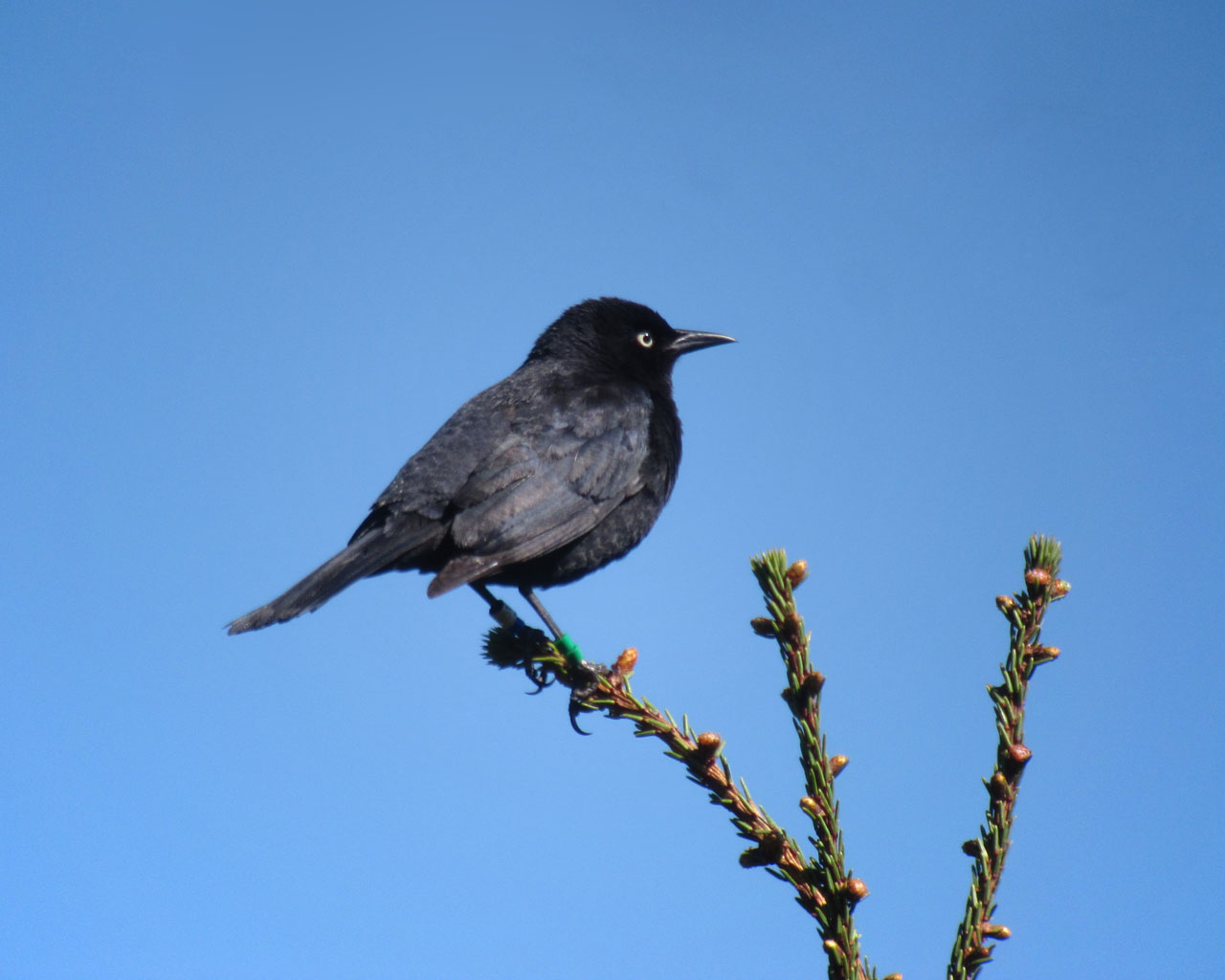 Beskrivelse: Rusty Blackbird er tilsyneladende på kraftig tilbagegang. Der er dog stadig en god ynglebestand i det allernordligste New Hampshire, og den er blevet studeret nøje de sidste par år. Mange af de individer, vi så i 2011, havde de der "color coded" plastik ringe.