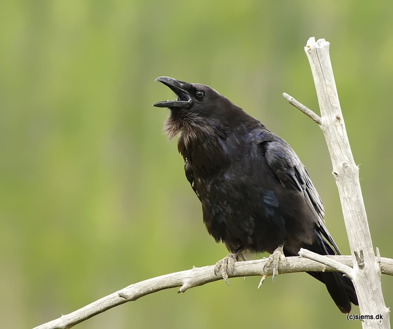 Beskrivelse: En samarbejdsvillig ravn, der her siger de karakteristiske lyde.