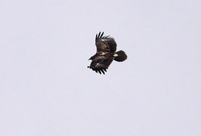 Beskrivelse: "Tönn" viste sig rigtigt godt fra ved 15-tiden denne 6.9 2012. Den sås fra Broksøvej, hvor den kredsede over Holmegårds Mose i selskab med såvel Musvåge som Rød Glente og Rørhøg. Sammen med våge - oplagt når man laver sammenligninger aquilaerne og andre rovfugle imellem - var den direkte større; den ville, i modsætning til Lille Skrigeørn, nok være svær at overse i en flok våger. I forhold til Lille Skrigeørn (frisk i mindet efter 3 i Falsterbo for et par dage siden) var fuglen langt mere ørn med bredere vinger, hvor især den bredere og mere kantede hånd (der medvirkede til et touch af Havørn) var slående i forhold til Lille Skrigeørns smallere og i glid mere tilspidsede.