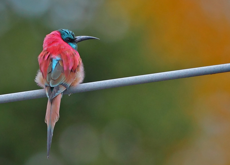 Beskrivelse: 2 carmine bee eaters appeared at Ingarö, Uppland this afternoon. Strange!