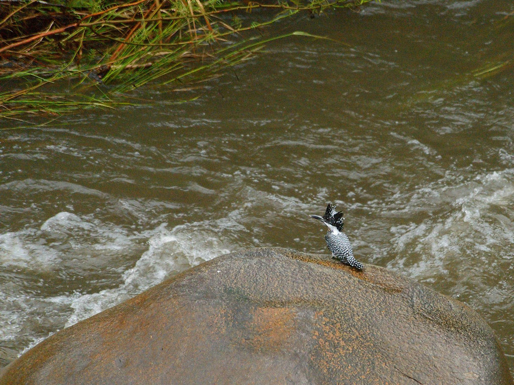 Beskrivelse: I read already years ago on Nick Upton's very useful website Thaibirding.com that "A few birders have been lucky enough to see Crested Kingfisher as it makes its way along a river close to headquarters" and "The campground a short distance along the road from HQ is a very pleaasnt spot and provides an opportunity to see a number of species. Crested Kingfisher is reported to fly along past a swimming spot which I assume is located here, although I may be wrong". I decided then, that I had to go there, and give it a try. For several reasons (especially me becoming a father), I did not make it until this year. We (me, my wife and our 2 year old daughter) rented for five days a bungalow with a balcony overlooking what I believed to be the right stream.