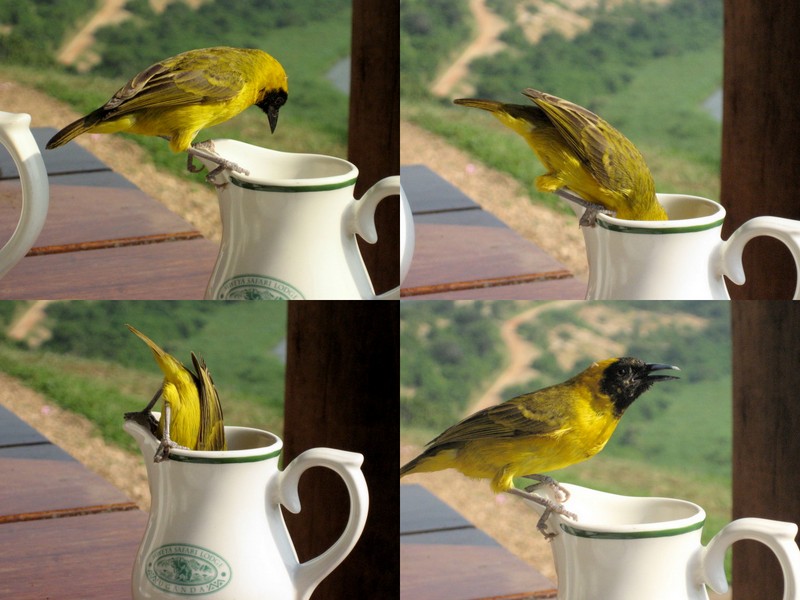 Beskrivelse: Meget tillidsfuld og nærgående - når morgenbordet var klar. Her udvises sand akrobatik i det vellykkede forsøg på at stjæle 'mælkeskindet' i flødekanden. Mweya Safari Lodge.