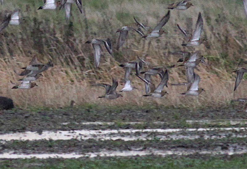 Beskrivelse: Fuglen flyver midt i billedet, og kendes fra Hjejlerne på mindre størrelse, grå undervinger (armhuler lidt mørkere end resten), grå kropsunderside og lidt slankere bagparti; man kan faktisk også ane, at vingebåndet er noget smallere end hos Hjejle.