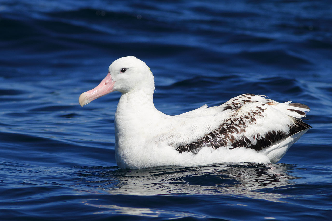 Beskrivelse: Vandrealbatros, nominatform (type exulans, "snowy albatross"). Ældre fugl, men ikke fuldt udfarvet. De enkelte vandrealbatros-typer (nu oftest regnet som selvstændige arter) er ekstremt svære at adskille i felten. Det meget store næb og den fortykkede, "løgformede" overnæbsspids er typiske for exulans, og desuden vil de andre former ofte have lidt mørk mønstring på brystsiden, men ingen af disse kendetegn er 100 % sikre. Den aktuelle fugl blev sikkert bestemt i forbindelse med indfangning, udmåling og ringmærkning.
