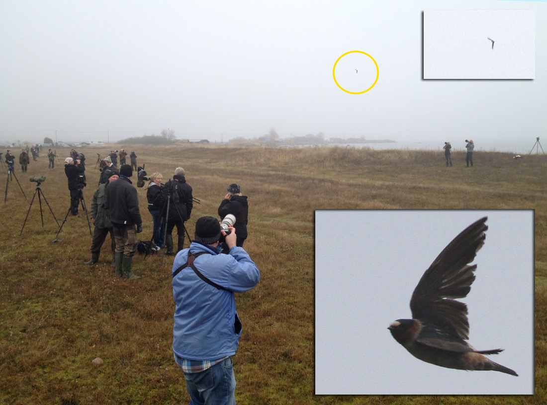 Beskrivelse: Found at 10:30 on Thursday 15 November, while foraging some hundred metres from the shore at Bläsinge, eastcoast of Öland, in the southern Baltic Sea. Initially identified as an Eurasian Crag Martin, but then reidentified as an American Cliff Swallow in the afternoon. Still present the next day, and has been seen the whole day today Nov 17th as well. Giving excellent views all the time, seen down to just a few metres!