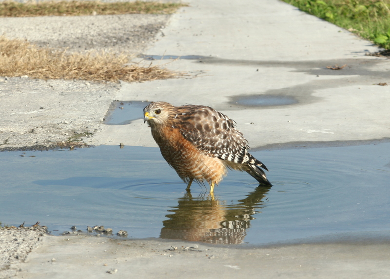 Beskrivelse: Billedet er taget nærmest ud af telt-døren på Camping pladsen i Flamingo.... ujævnheder på vejen udgjorde et 'fuglebad' for mange arter