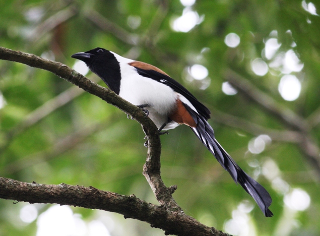 Beskrivelse: Min rejsefælle Hans Wulffsberg og jeg kårede Whitebellied Treepie som den flotteste af Sydindiens endemiske fuglearter. Den ses ret nemt i skovområder i f.eks. Thattekkad og Periyar.