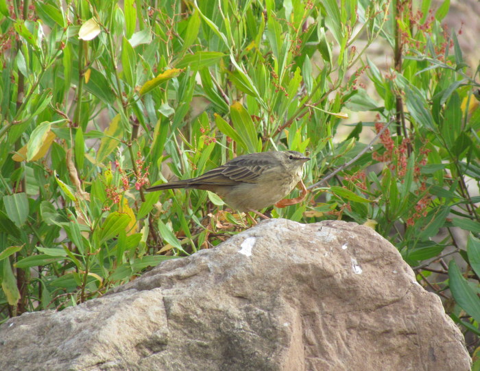 Beskrivelse: Selv om ryggen virker ustribet, og mere kunne pege i retning af Plain-backed Pipit (A. leucophrys), end den ofte velstribede ssp. hararensis af Langnæbbet Piber, tror jeg, at det må være en slidt (?) adult.