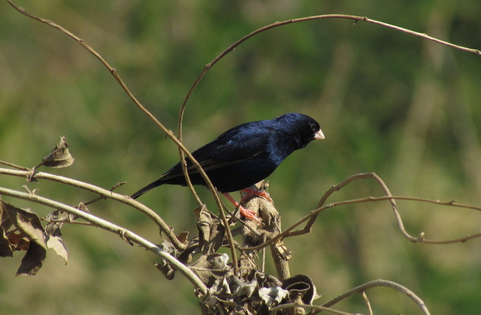 I forhold til de 'sjovere' arter (Barka, Wilson's og Jambandu Indigobird) hvor blegbrune sving- og halefjer er et godt første holdepunkt, er det hos Village Indigobird langt mindre påfaldende. Faktisk lagde jeg først mærke til det på denne fugl, da jeg så på billederne hjemme på pc'en!
