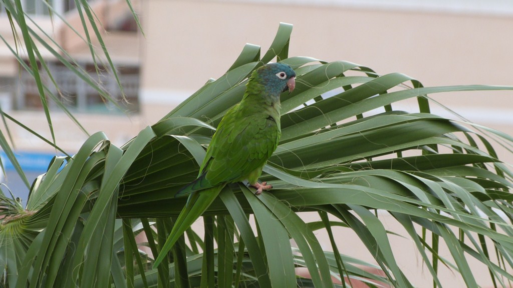 Beskrivelse: Tre fugle sås dagligt flyve rundt over byen, og hver aften inden solnedgang gik de til overnatning i en palme lige ud for vores hotel. Jeg har fundet rapporter om disse fugle helt tilbage til 2009 (dengang var der fire). Der er uden tvivl tale om undslupne fugle, men de har været på denne lokalitet i mindst fire år nu.