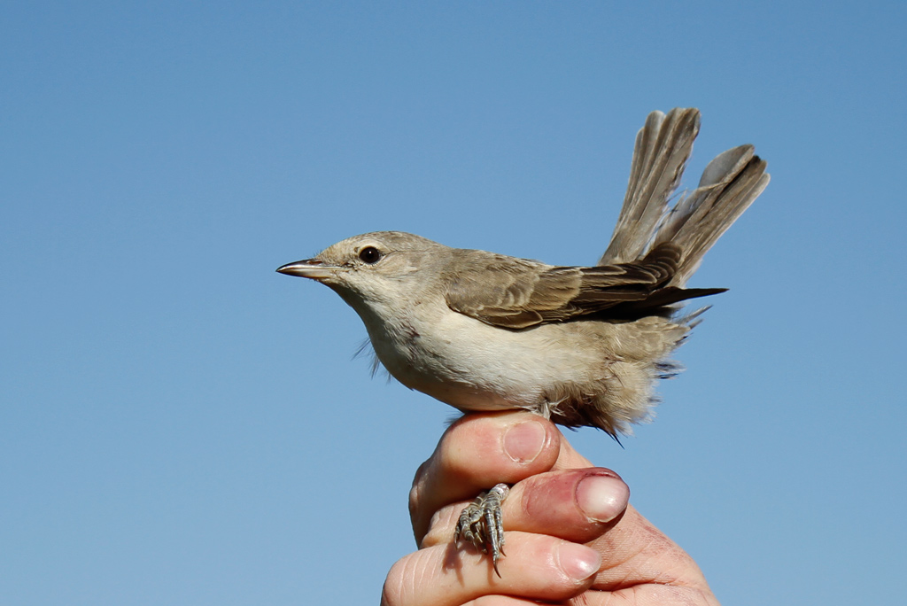 Beskrivelse: Hånden tilhører Henrik Böemer,som var så venlig at stå på gårdspladsen, og fremvise fuglen ligesom vi kørte fra Blåvand.