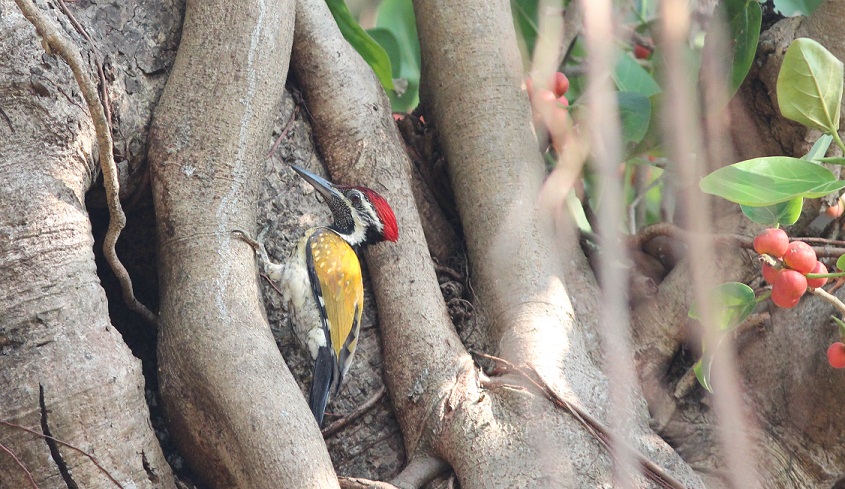 Beskrivelse: On temple grounds among the roots of a sacred Banyan tree.