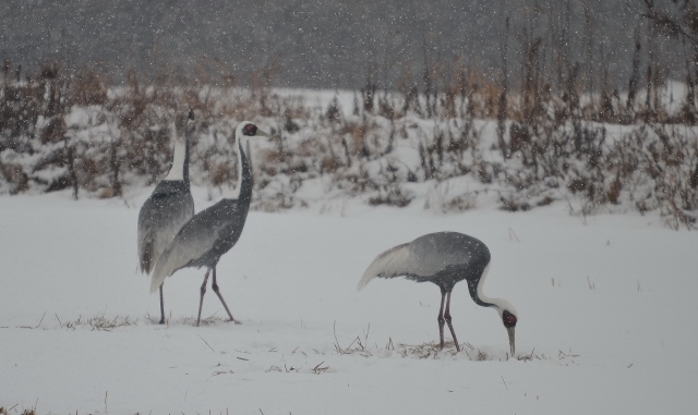 Beskrivelse: Tæt på grænsen til Nord-Korea findes flere overvintringspladser for både Hvidhalset og Japanske Traner.