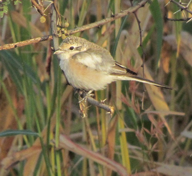 Beskrivelse: Med en halv snes fugle set, var Masketornskade den mest talrige Tornskade på lokaliteten, især i den åbne akacie-skov.