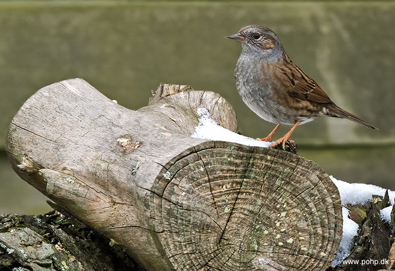 Beskrivelse: Pludselig, midt i alle havens Grå/Skovspurve, var der en Jernspurv. Den var noget mere diskret.