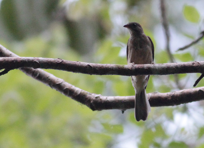 Beskrivelse: En af de svære arter i Thailand. Den ligner en bulbul, men har kraftigere og krumt næb, ligesom halen afviger. De yderste halefjer har hvide yderfaner og er kun ca. halvt så lange som de øvrige. Dette er en fjerkarakter, der dog fremgår fint her.