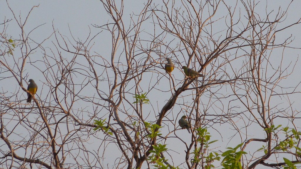 Beskrivelse: Sammen med to African Green Pigeon (th).