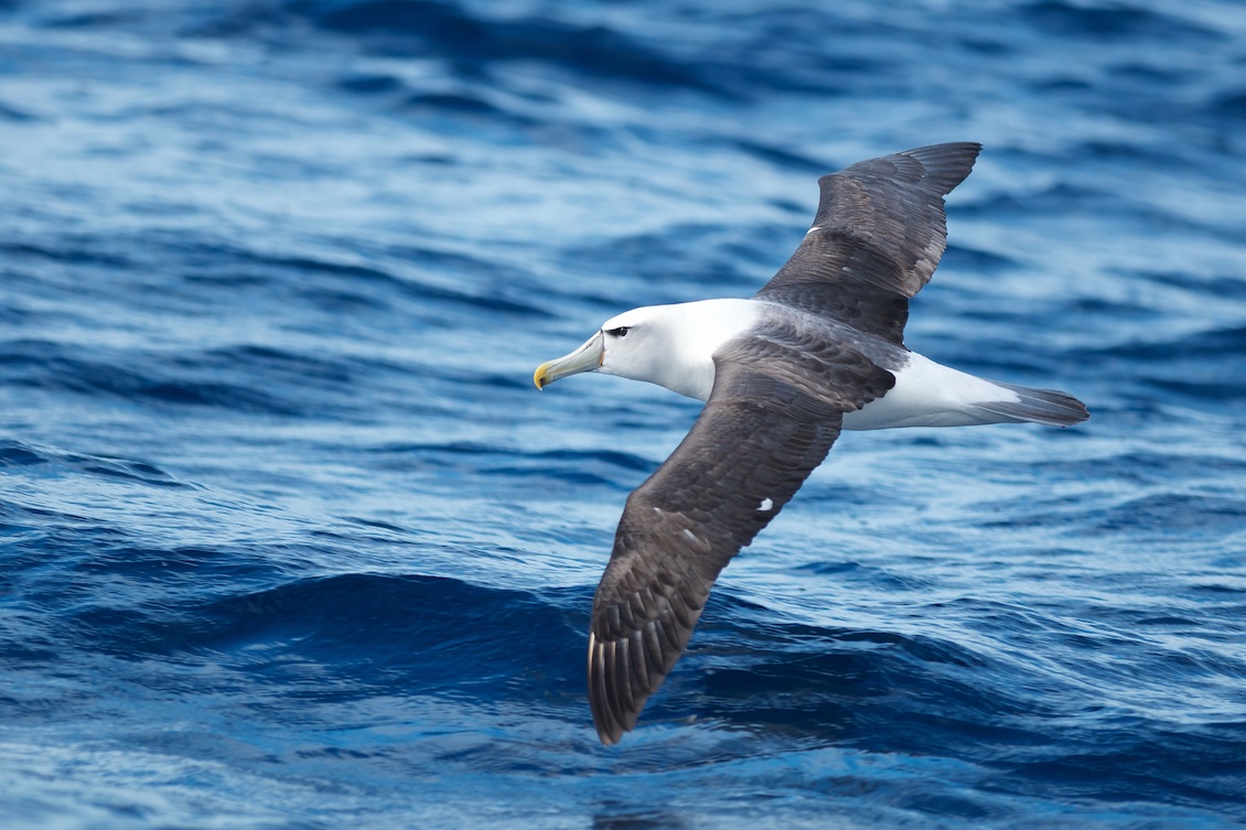 Flot fugl (Mollymawk), rolig, robust, højt placeret øje (el. lav pande...).