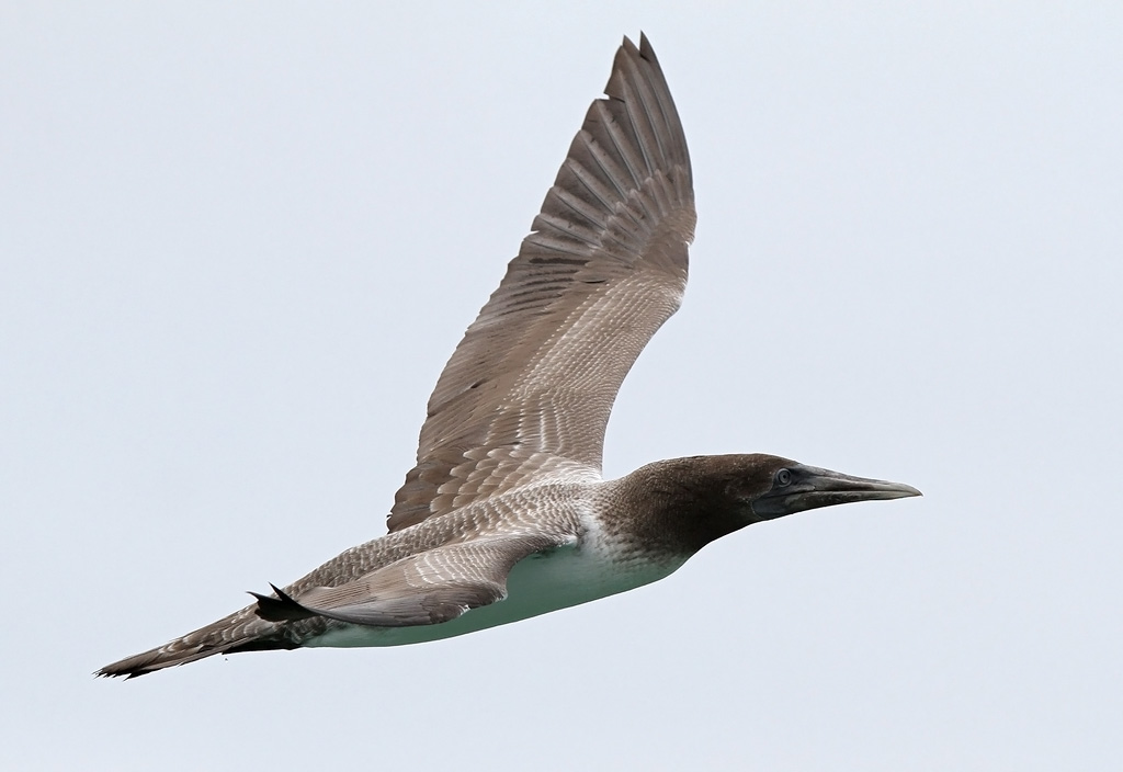 Beskrivelse: Similar to juv. Blue-footed Booby but Nazca with less dark on breast.