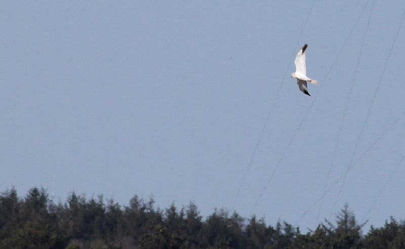 Alderen blev en del diskuteret. For ældre end 3k, altså adult talte et meget lys helhedsindtryk med lidt brun skygning på ryg og overvingedækfjer, der tit ses hos fugle i i øvrigt adult dragt. Fuglen her har dig - som man kan se - en meget svag lysegrå bagkant på armen, ligesom hovedtegningerne trods alt er synlige, hvor hovedet hos en adult typisk villevære mere ensartet lysegråt. Ovenfra sås tværbåndede overhaledækfjer, hvilket er tilfældet hos ad. hanner, men kan ses komplet fra 2K efterår (hvor en del dog har mere eller mindre renhvid overgump).