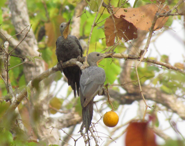 På et lille træ var der nogen appelsin-lignende, hårdskallede frugter som det krævede lidt teknik at få bugt med. Først skulle der hakkes hul i frugten, siden blev den lange tunge brugt til at slikke indholdet ud med.