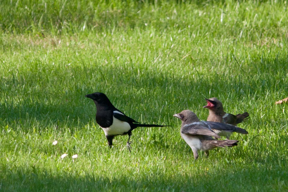 Fuglene kommer ofte i vores have, men det er første og eneste gang jeg har set hele familien samlet. 2 alm. forældre, 2 brune unger og en alm. unge. De hyggede sig med resterne af lillebrors øllebrød, som jeg havde glemt at tage med ind:)