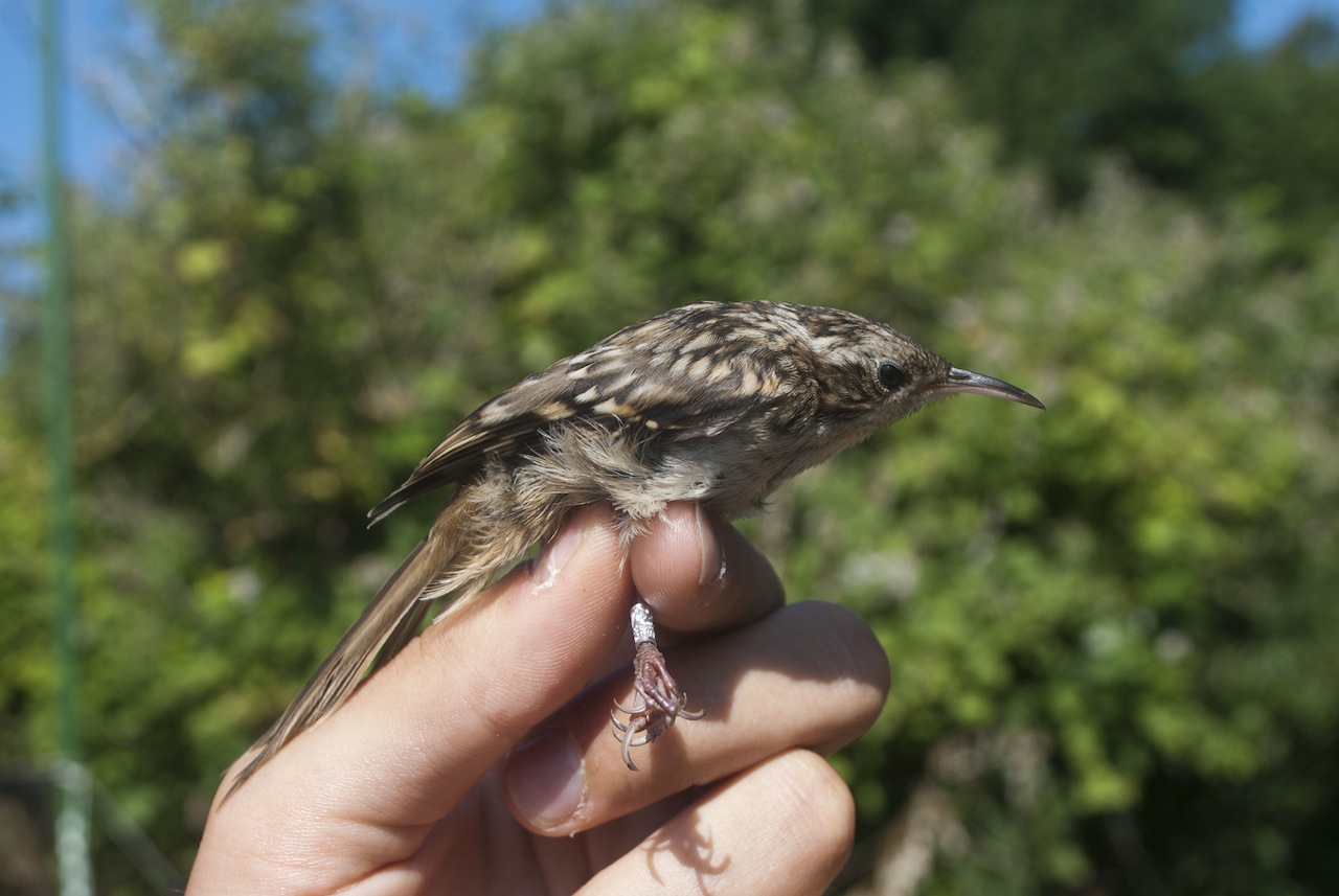 Beskrivelse: Bemærk længere og mindre krumt næb end hos Træløber. Panden fremstår desuden fladere end hos Træløber, grundet næbbets form.